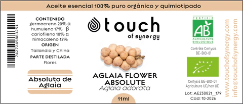 Na aromaterapia, o óleo essencial Absoluto de Aglaia é profundamente relaxante, restaurador e calmante. Melhora o estado de ânimo, estimula a cura emocional, traz paz e acalma.