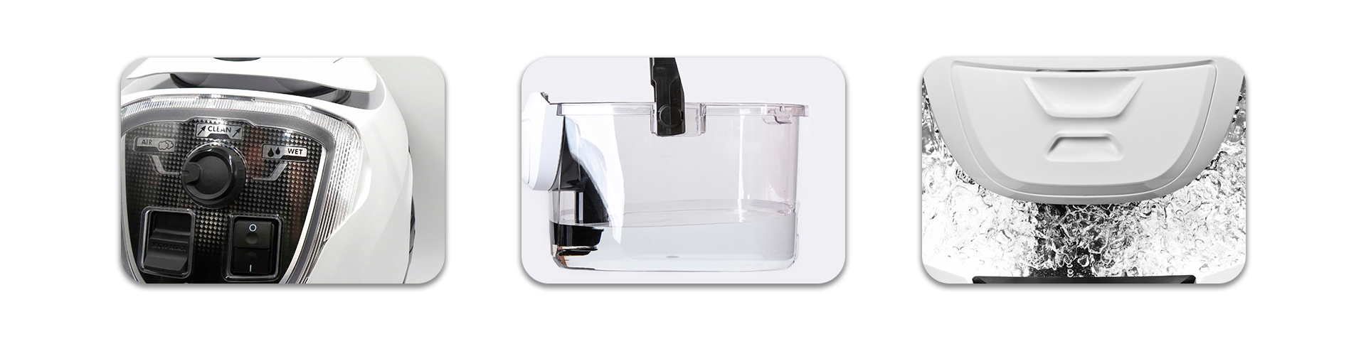 Purifica o ar, aromatiza os ambientes, absorve odores, elimina os ácaros de tapetes, colchões e estofados. Possui acessórios opcionais para limpeza profunda, limpeza de janelas, limpeza de pelos de animais, desentope pias, enche balões de ar, conserva roupas no vácuo.