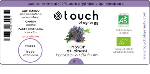 O óleo essencial de Hissopo é reconhecido por ser um limpador energético. É expectorante, antiespasmódico, bactericida e antisséptico. Pode ajudar contra a tosse, catarro, garganta irritada e infecções no peito. Pode ser usado para hematomas e inflamações da pele.